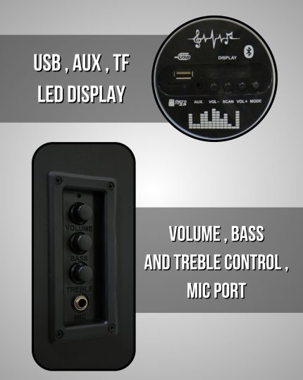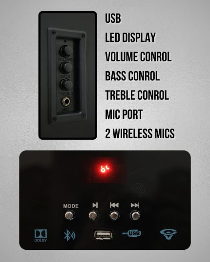BT v5.1/USB/ FM /AUX/MIC Input 20.32cm Subwoofer Remote control Karaoke UHF Wireless Mic Integrated Media Control LED display
