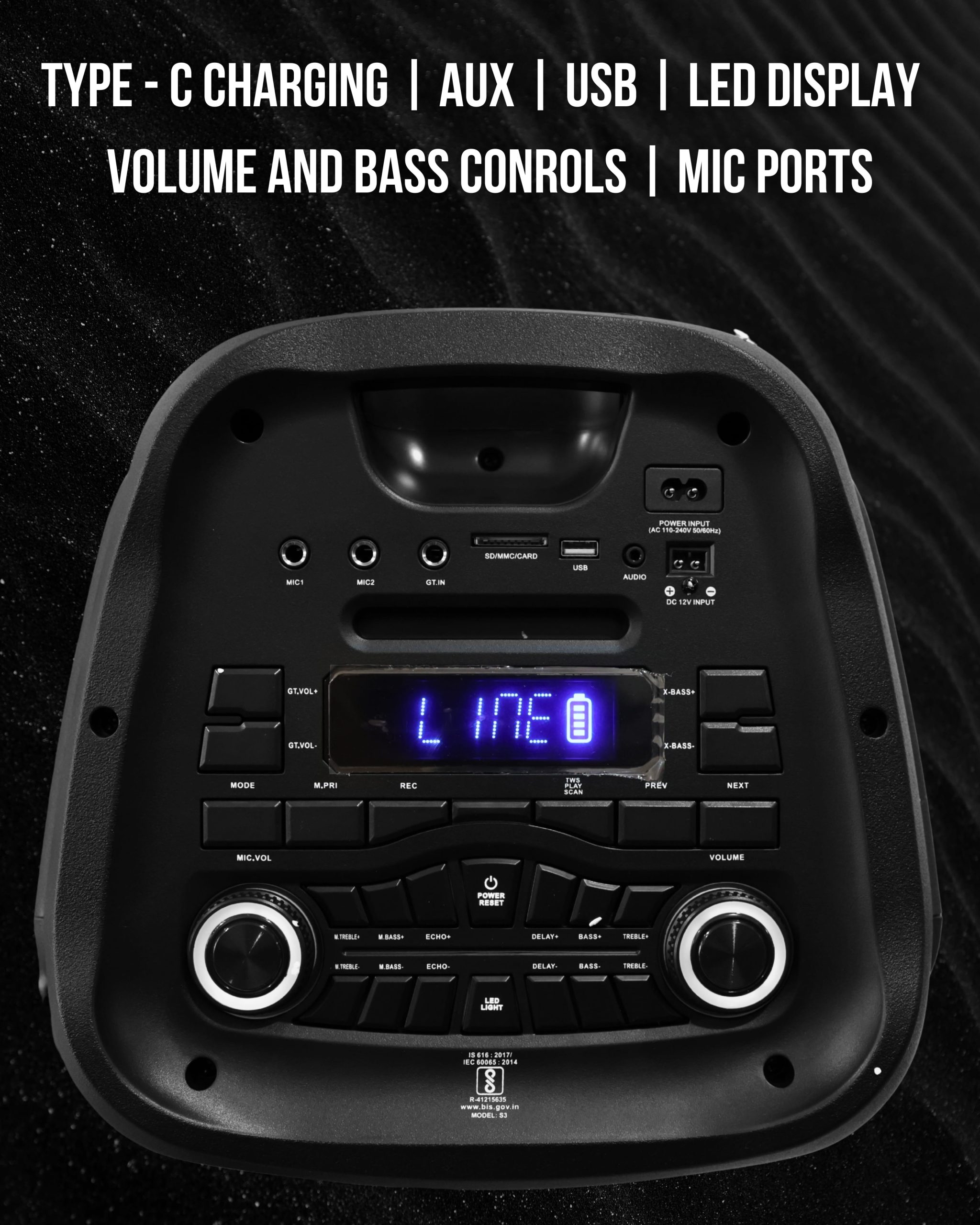 BT v5.1/USB/ FM /AUX/MIC Input