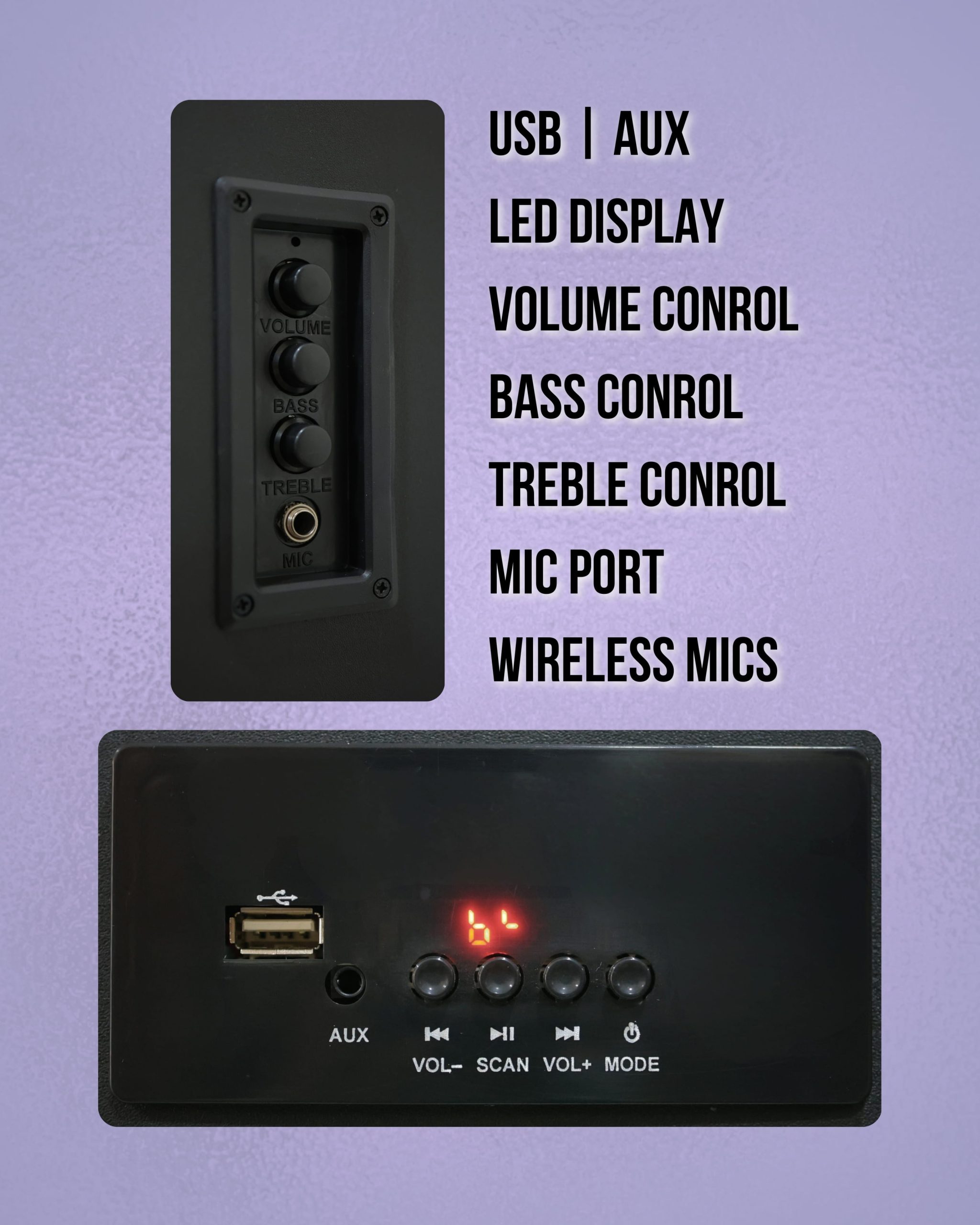BT v5.1/USB/ FM /AUX/MIC Input