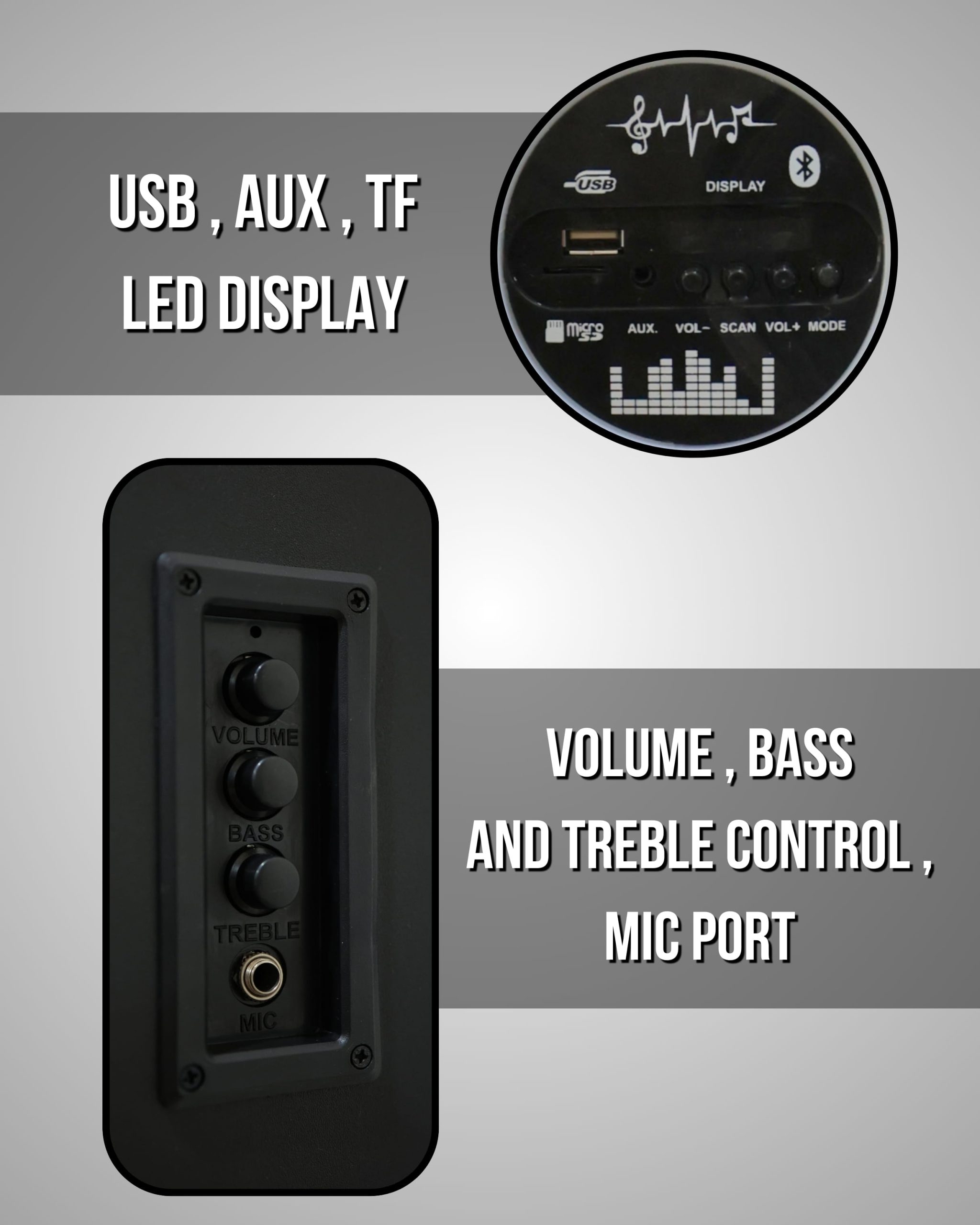 BT v5.1/USB/ FM /AUX/MIC Input