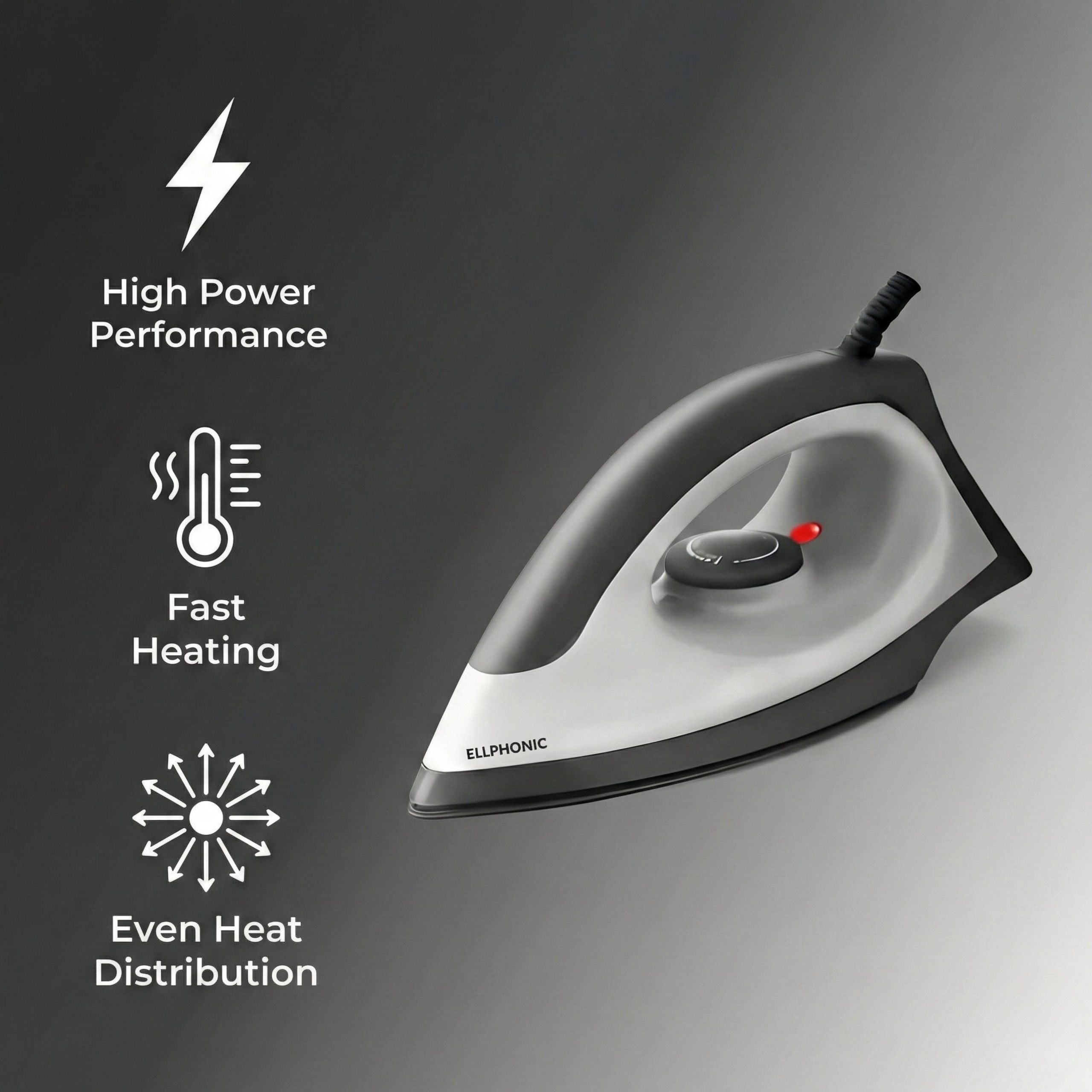 ELLPHONIC Smooth 1100 Watts, Iron Press, Greblon Non Sick Soleplate with German Technology| Shock Proof Body|